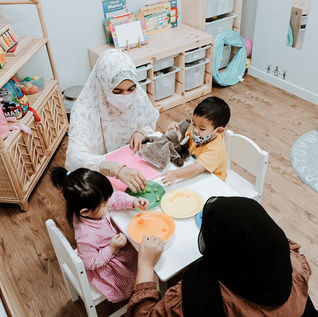 We first help children settle and focus, then guide them through understanding, followed by hands-on application.